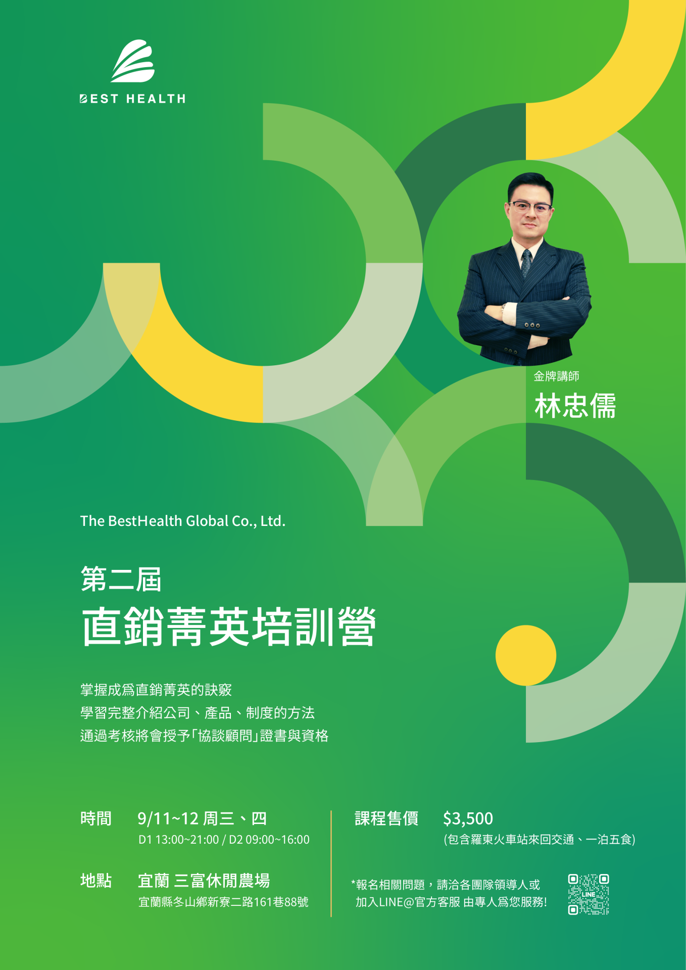【宜蘭訊】2024年9月11日——愛健康國際於本週正式舉辦了首屆『菁英培訓營』,為期兩天的活動在宜蘭。此次培訓營旨在培養並提升公司內部精英人才的專業技能和領導能力,參加者來自全台各地菁英領導。