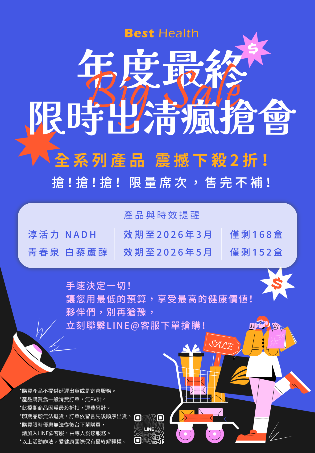 『愛健康國際年度最終清倉』全系列產品震撼下殺 2 折!